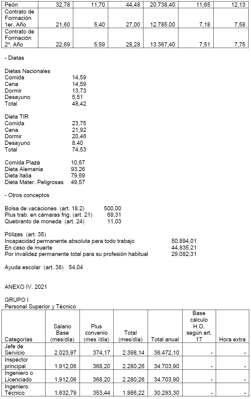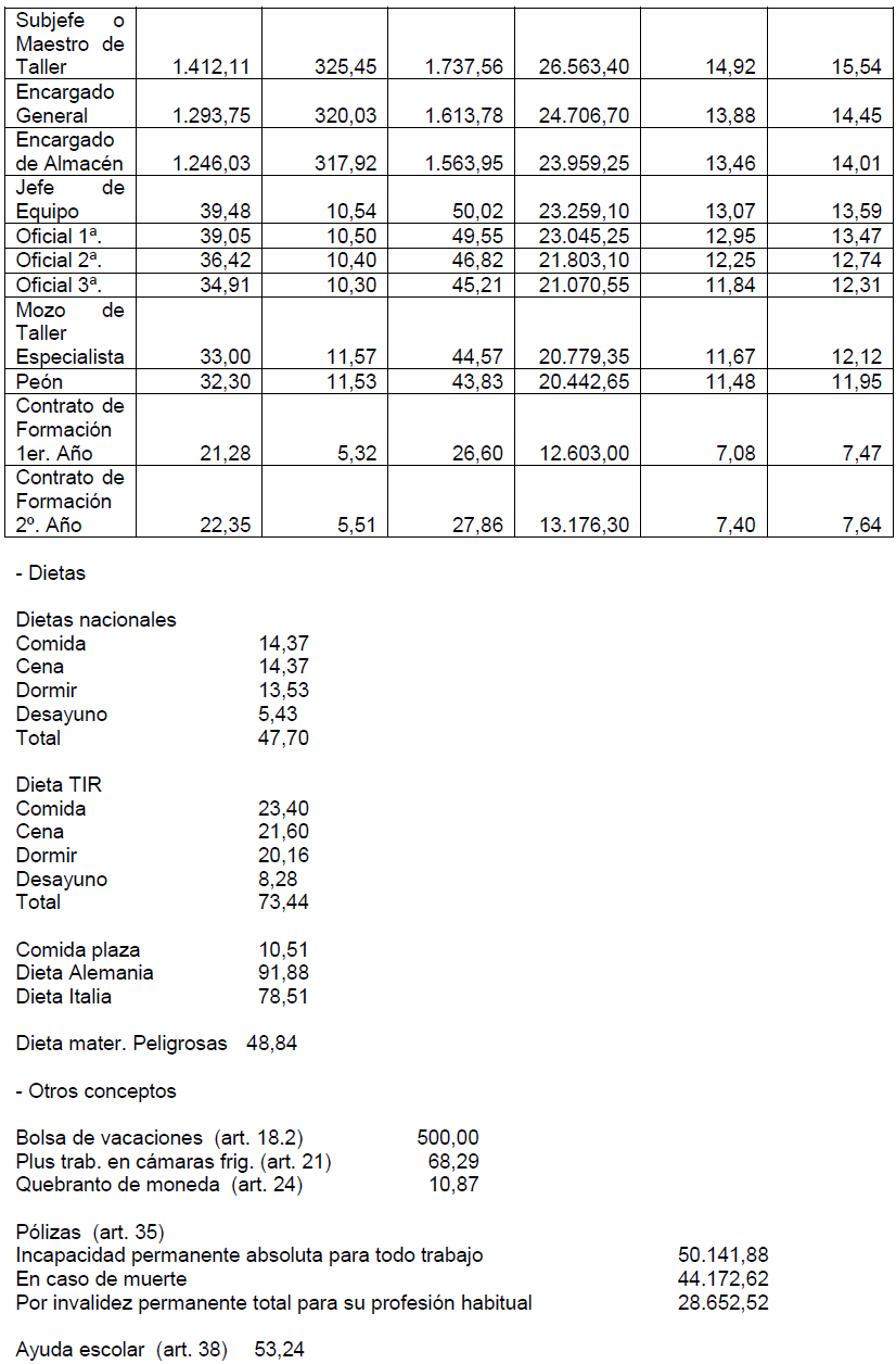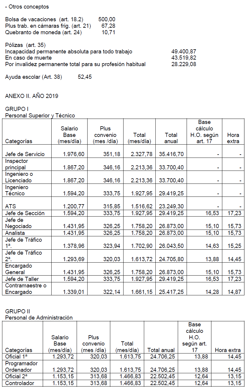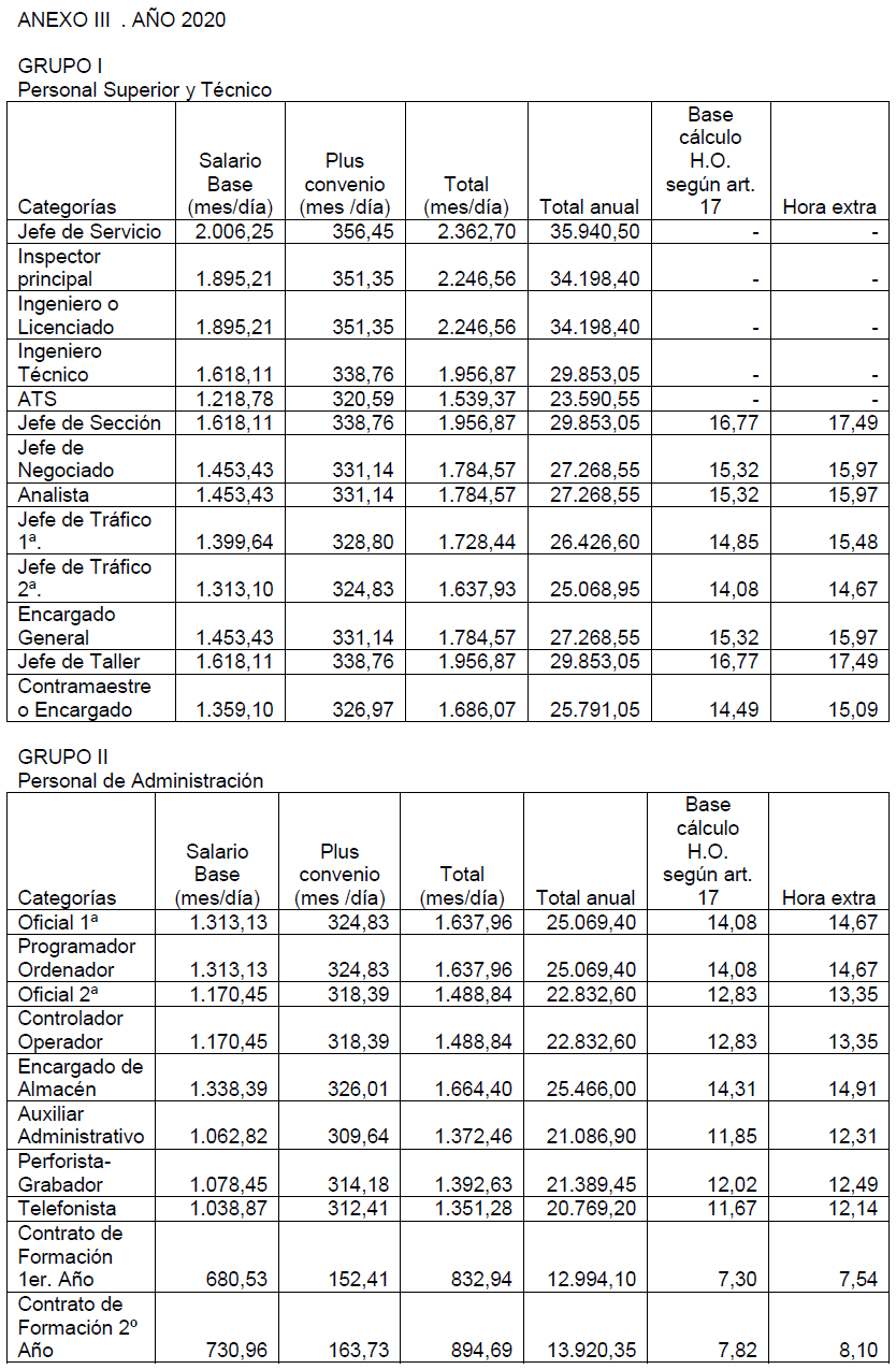 – Para el año 2020, las tablas salariales de 2019 y demás conceptos económicos se incrementarán en un 1,5%. Anexo III.