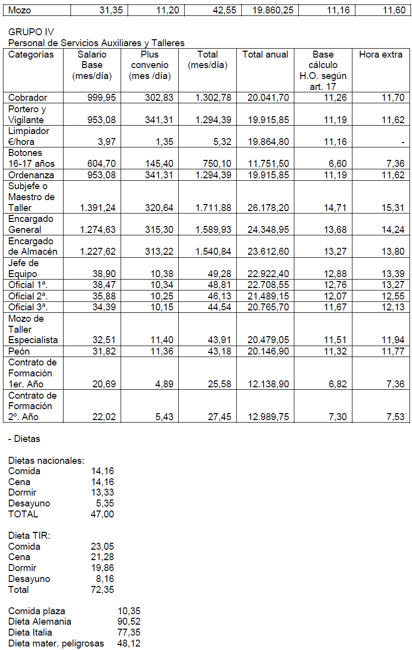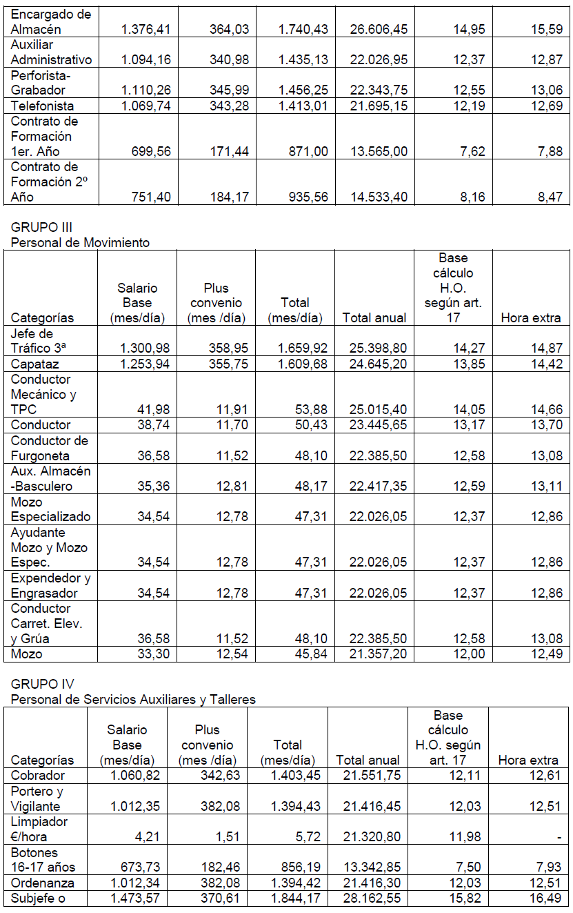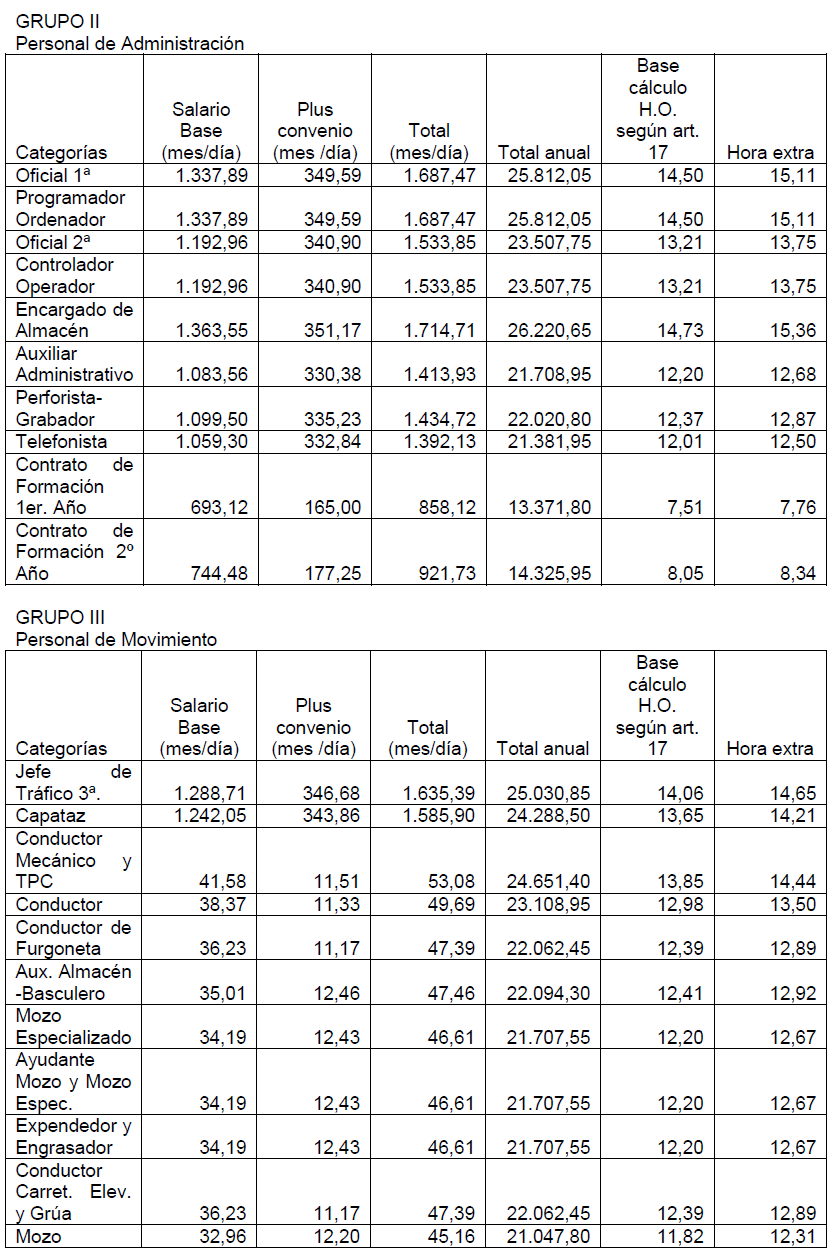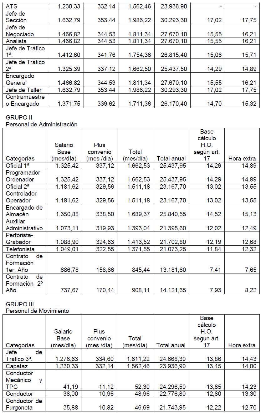 – Para el año 2020, las tablas salariales de 2019 y demás conceptos económicos se incrementarán en un 1,5%. Anexo III.