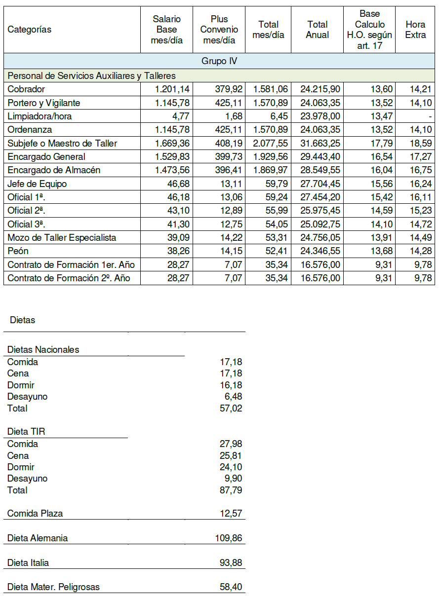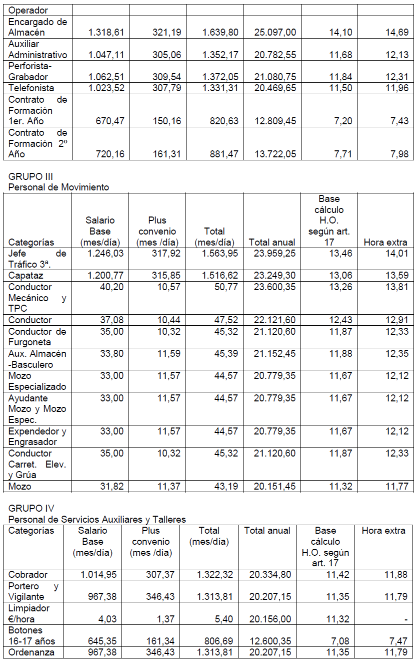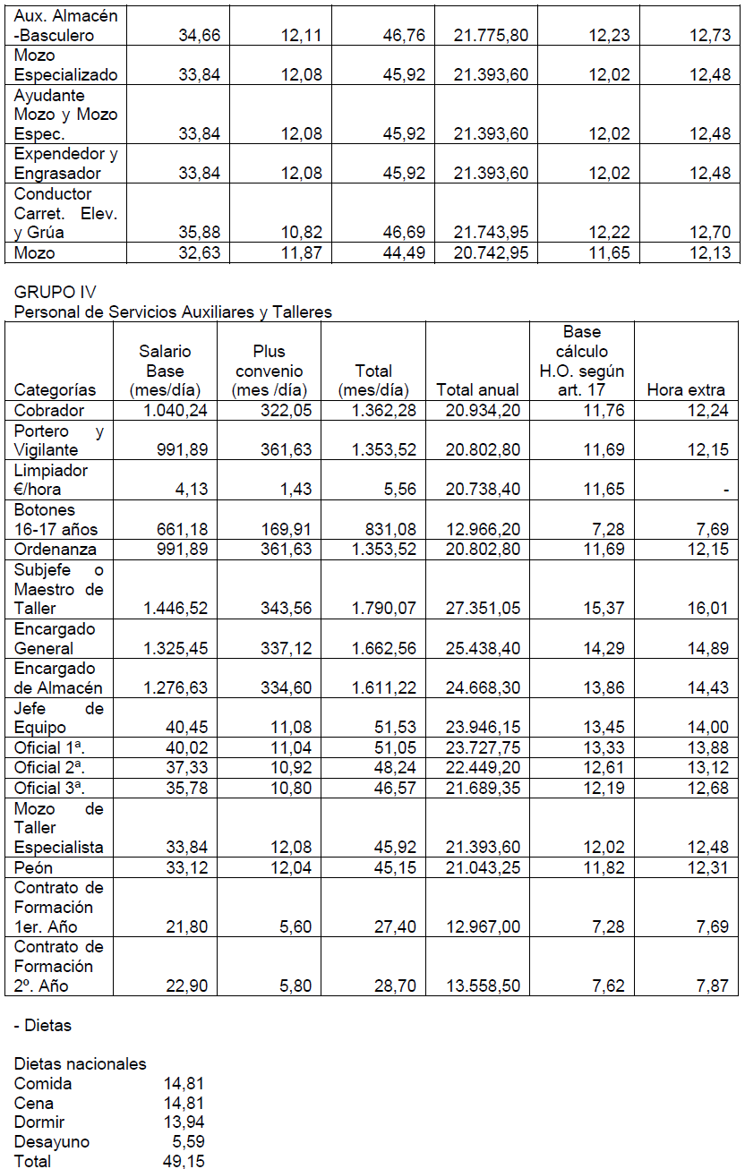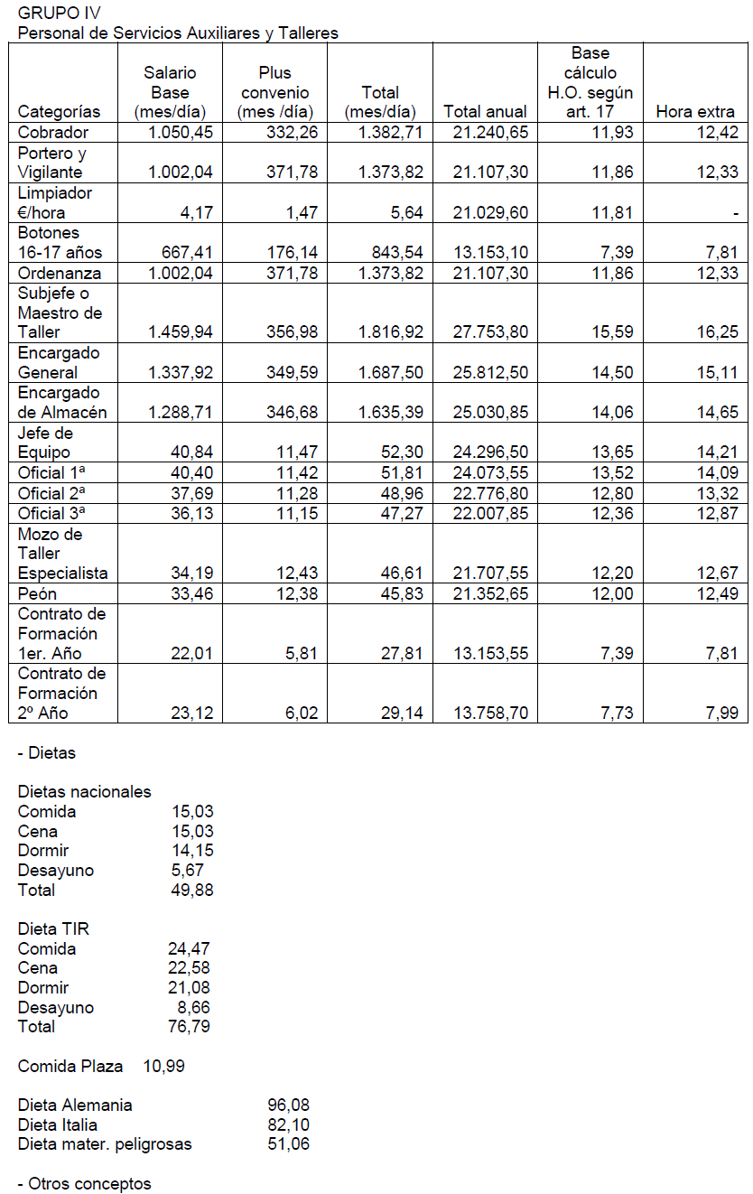 – Para el año 2020, las tablas salariales de 2019 y demás conceptos económicos se incrementarán en un 1,5%. Anexo III.