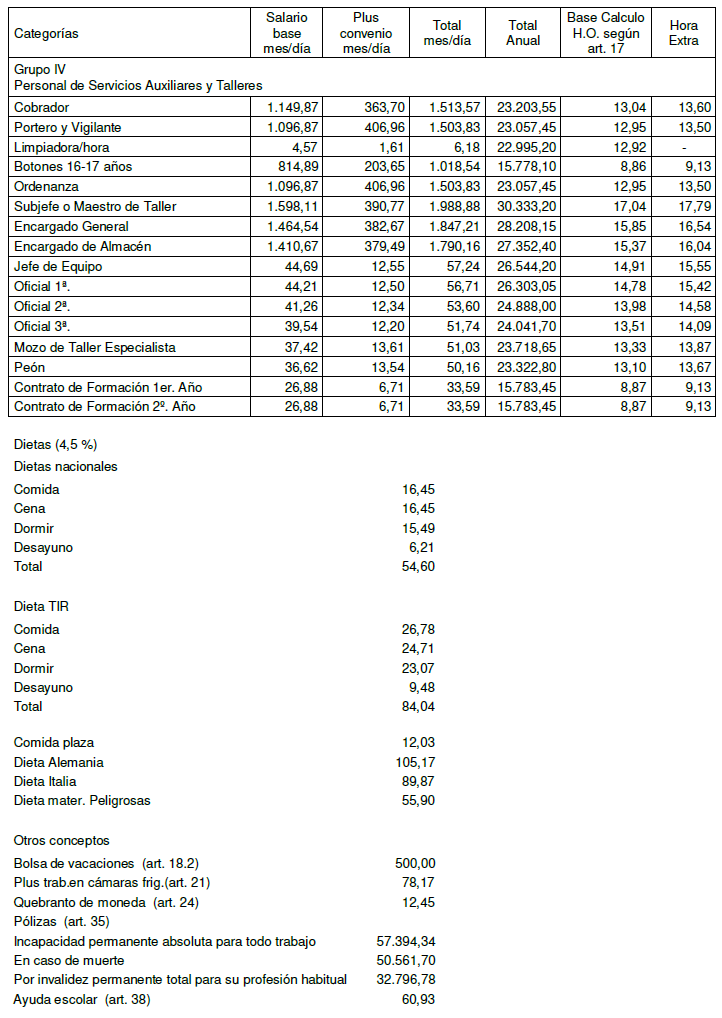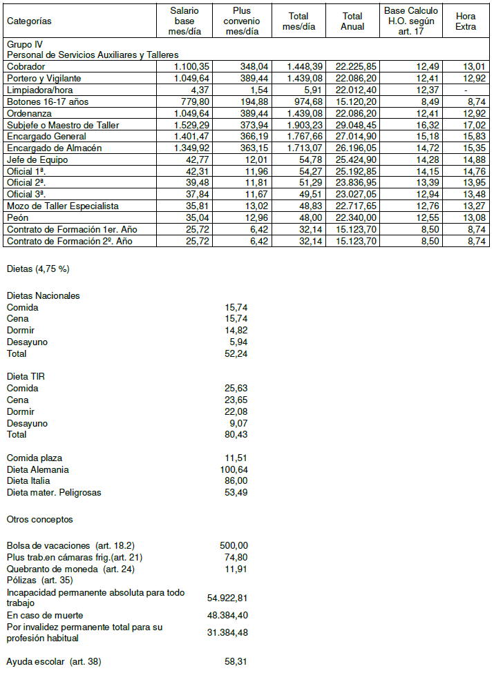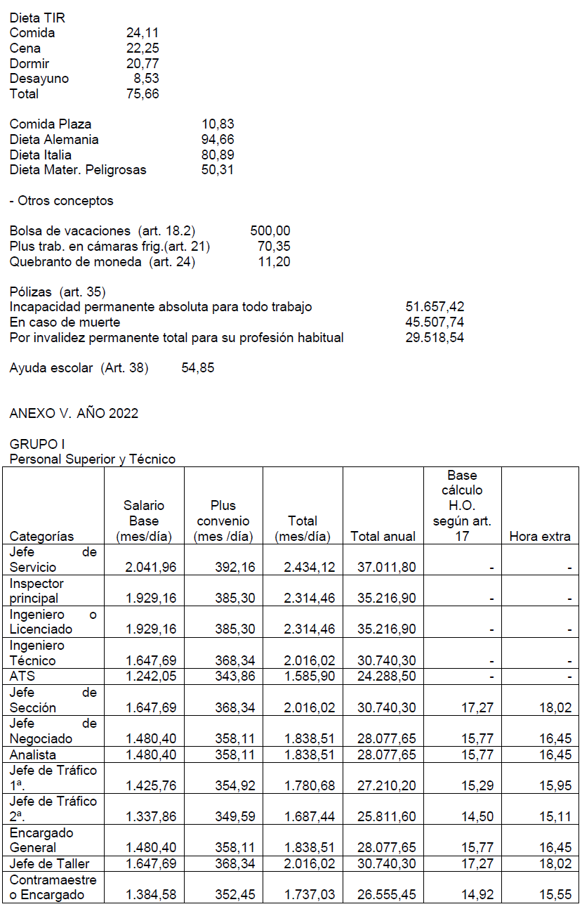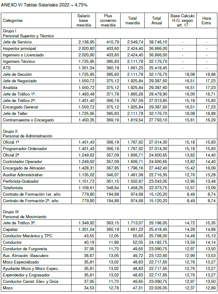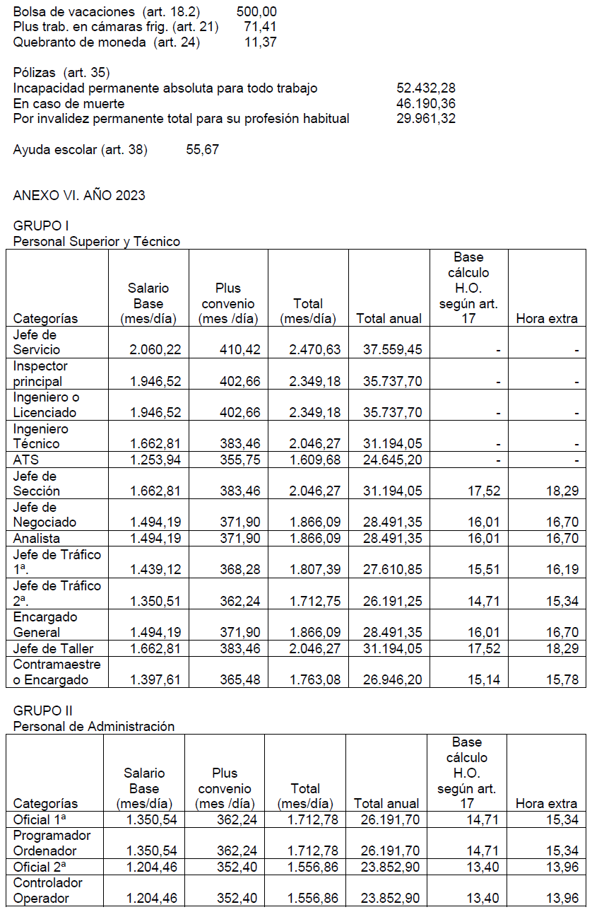 a) Las tablas salariales, en todos sus conceptos, se incrementarán respecto al 2022, en un 4,75% (efectos desde el 1 de enero 2023), excepto la bolsa de vacaciones. Anexo VI.