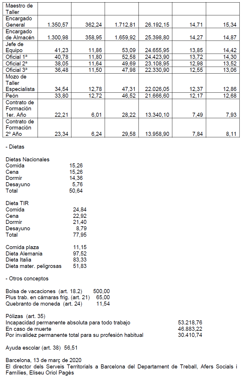 RESOLUCIÓ de 6 de març de 2026, per la qual es disposa la inscripció i la publicació de les Taules Salarials definitives per a l’any 2025 del Conveni col·lectiu del Sector del Transports de Mercaderies per Carretera i Logística de la província de Barcelona (codi de conveni núm. 08004295011994).