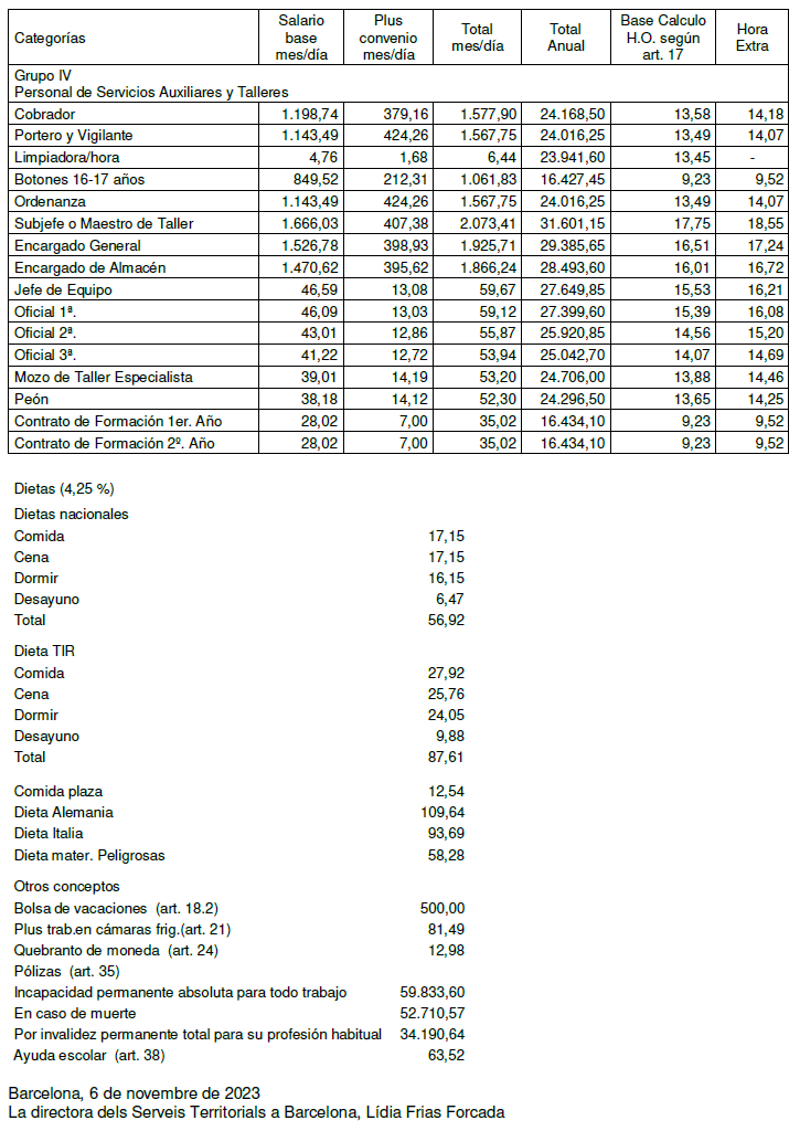 CONVENIO COLECTIVO DE TRABAJO DEL SECTOR DE TRANSPORTE DE MERCANCÍAS POR CARRETERA Y LOGÍSTICA DE LA PROVINCIA DE BARCELONA AÑOS 2011 -2023.