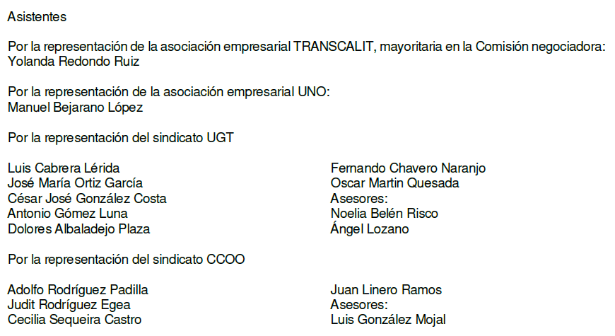 En este acto y en este mismo momento las partes vuelven a reconocerse mutua y recíprocamente como interlocutores válidos y únicos para llevar a efecto la revisión y actualización antedicha, dejando nuevamente constancia de la condición de TRANSCALIT como asociación mayoritaria de la Comisión Negociadora de la parte empresarial.
