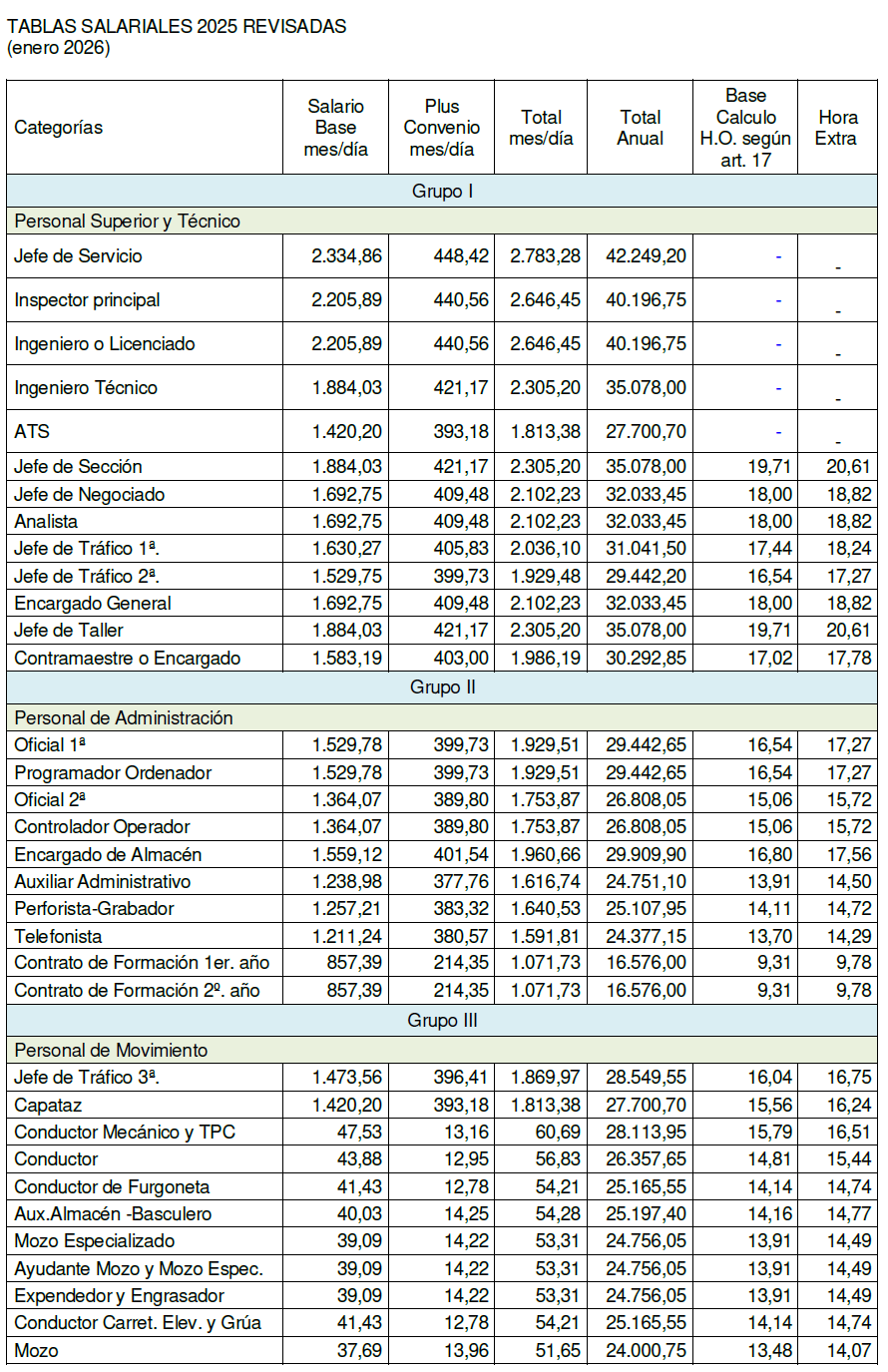 «Si la suma de los Índices de Precios al Consumo del Estado (IPC) para los años 2024 y 2025 supera el 5,5% se producirá una revisión técnica en el exceso de dicho 5,5%, que no generará atrasos, y que se aplicará a las tablas de 2025. Dicha revisión técnica está topada, de manera que en ningún caso será superior a un 1% y será aplicable a partir del 1 de enero de 2026.» Tras dicha revisión, el resultado es de una diferencia del 0,2% de incremento sobre las tablas anteriormente publicadas para el 2025, quedando las tablas salariales definitivas para el año 2025 según las anexadas a este acta.