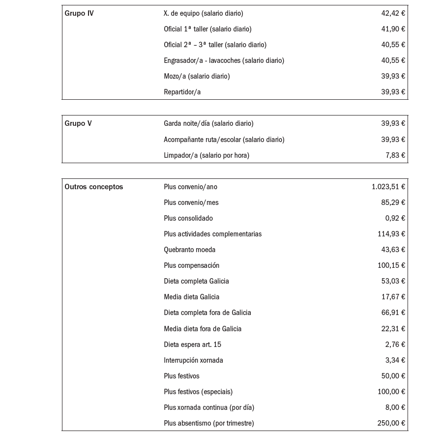 A estrutura salarial para o resto do persoal, que non estea incluído nas categorías de condutor/a nin condutor/aperceptor, conterá os conceptos que seguen: