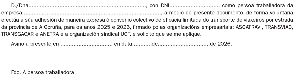 ANEXO IV.- Documento de adhesión ó convenio colectivo de eficacia limitada do transporte de viaxeiros por estrada da provincia de A Coruña para os anos 2025 e 2026.