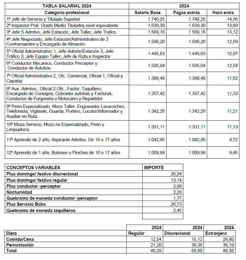 A partir de la firma del presente Convenio las dietas quedan establecidas según tabla salarial en el ANEXO I, dejando claro que las dietas son una indemnización que compensan los gastos que se originan cuando el trabajador, por orden de la empresa, tiene que comer, cenar o pernoctar fuera de su residencia habitual y centro de trabajo.