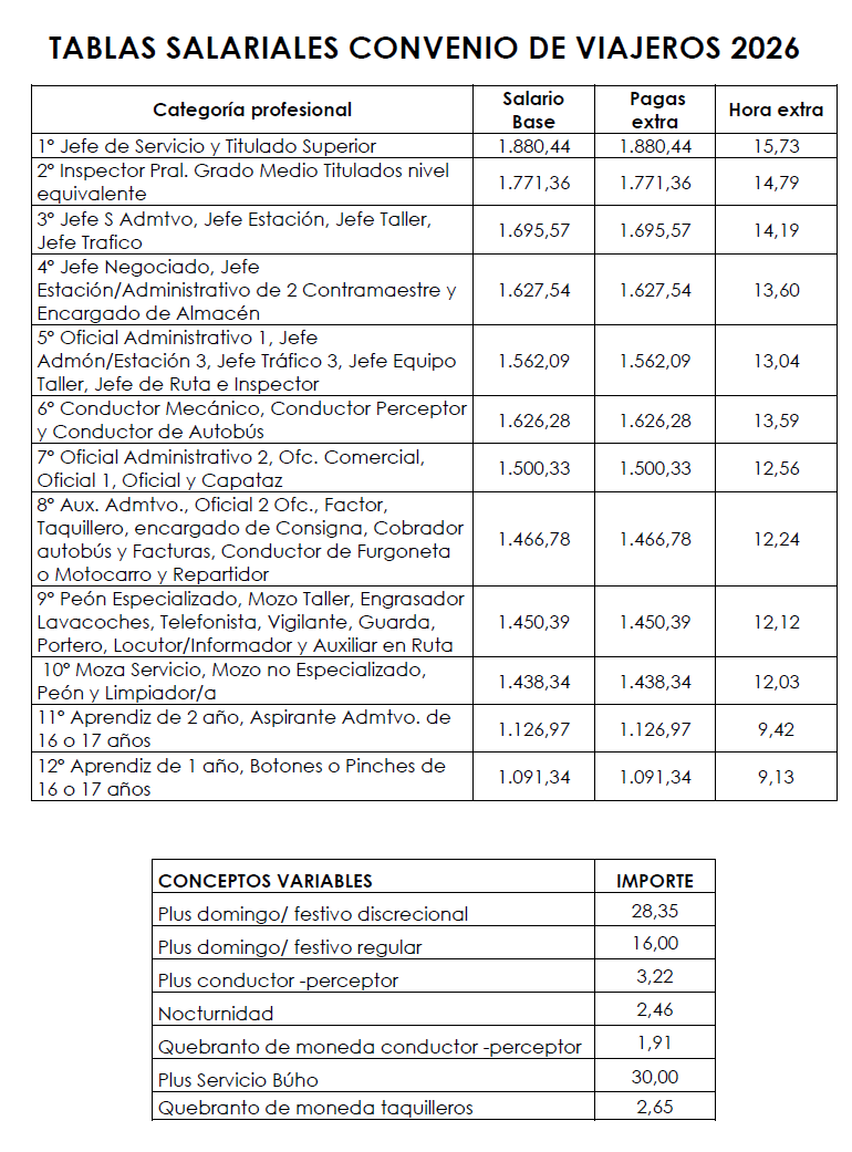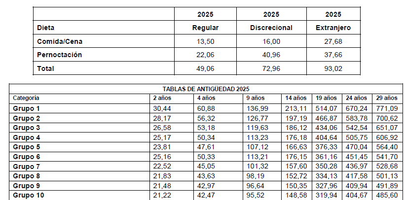 Con fecha de efectos de 1 enero de 2026, las Tablas Salariales de 2025 experimentarán un incremento pactado del IPC real del año 2025 más 0,25%, más 0,70 %.