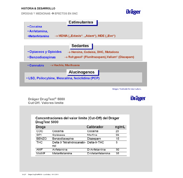 La empresa podrá realizar pruebas de detección de consumo de drogas. Consisten en la determinación de drogas en saliva mediante el aparato homologado «Dräger Drug Test 5000», cuya verificación oficial esté vigente. Estará a disposición de los trabajadores de la empresa o de sus representantes legales el registro de la verificación del equipo con el que se han realizado las pruebas.