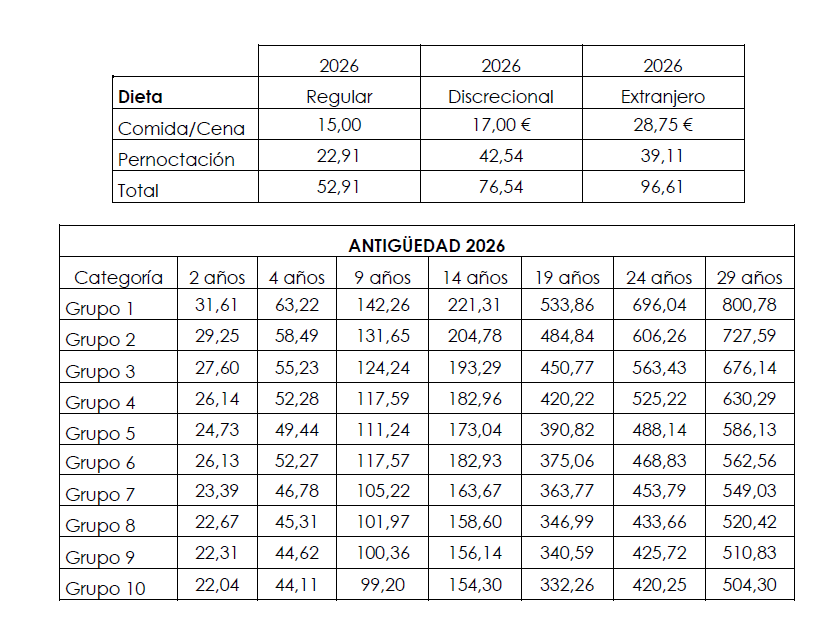 Con fecha de efectos de 1 enero de 2027, las Tablas Salariales de 2026 experimentará un incremento pactado del IPC real del año 2026 más 0,25%, más 0,70 %.