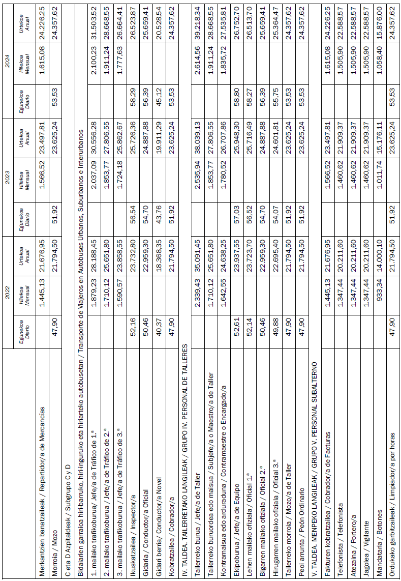 TABLA SALARIAL AÑOS 2022, 2023 Y 2024.