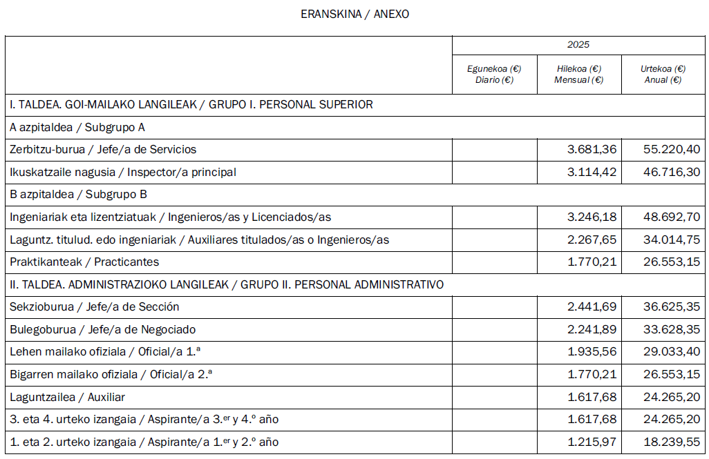 «….Las tablas salariales del 2025 tendrán un incremento del IPC del año 2024 de Euskadi.