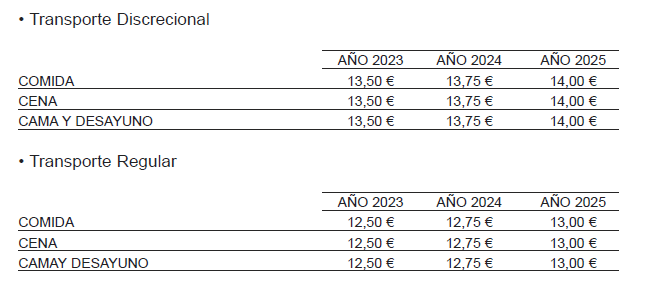 En el supuesto de que las cantidades percibidas por la cama y desayuno no alcancen el coste que le supone al trabajador, deberá presentar las facturas o comprobantes a la empresa teniendo en todo caso ésta la opción a contratar el lugar de alojamiento para el trabajador. En este último caso, la empresa contratará una habitación individual y con baño incorporado.