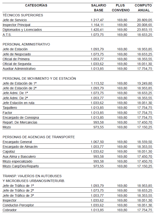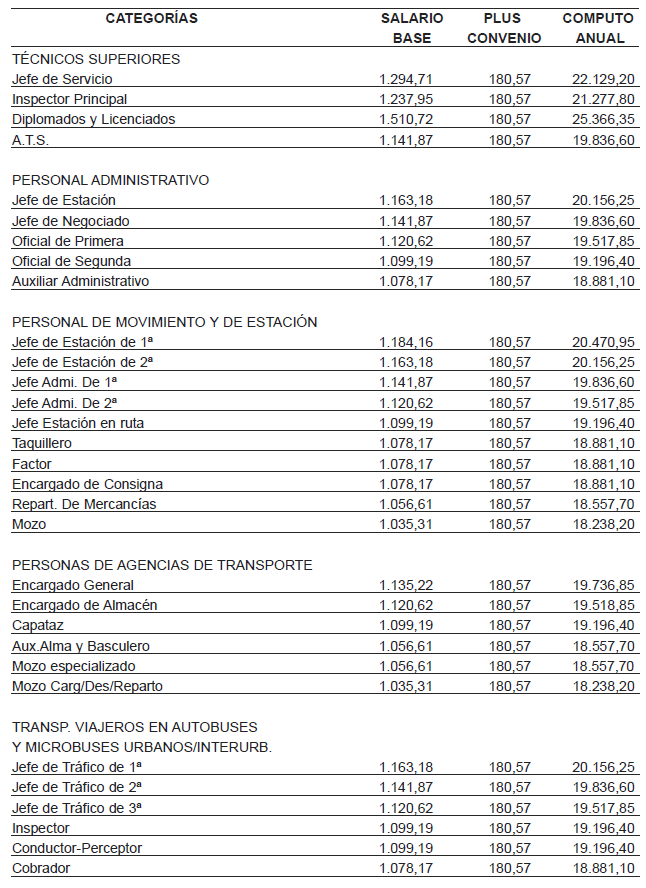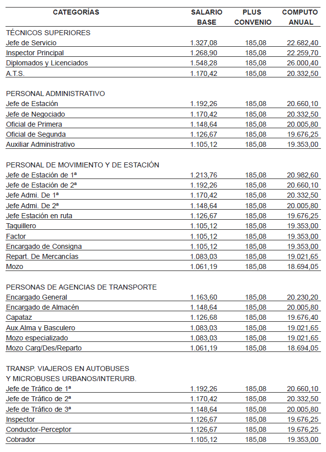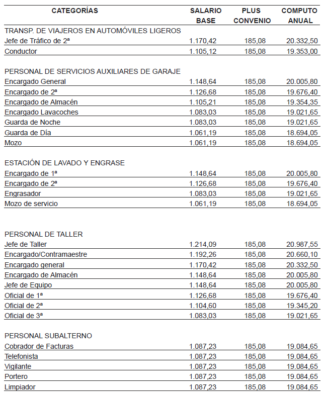 Para el año 2020 se mantienen vigentes las tablas salariales de 2019 y para el año 2021 se incrementan las tablas salariales del año 2019 en un 3%. Todo ello según acuerdo parcial de fecha 20-10-2022 (BOP 16-11-2022), cuyas tablas se adjuntan como anexo I y II.