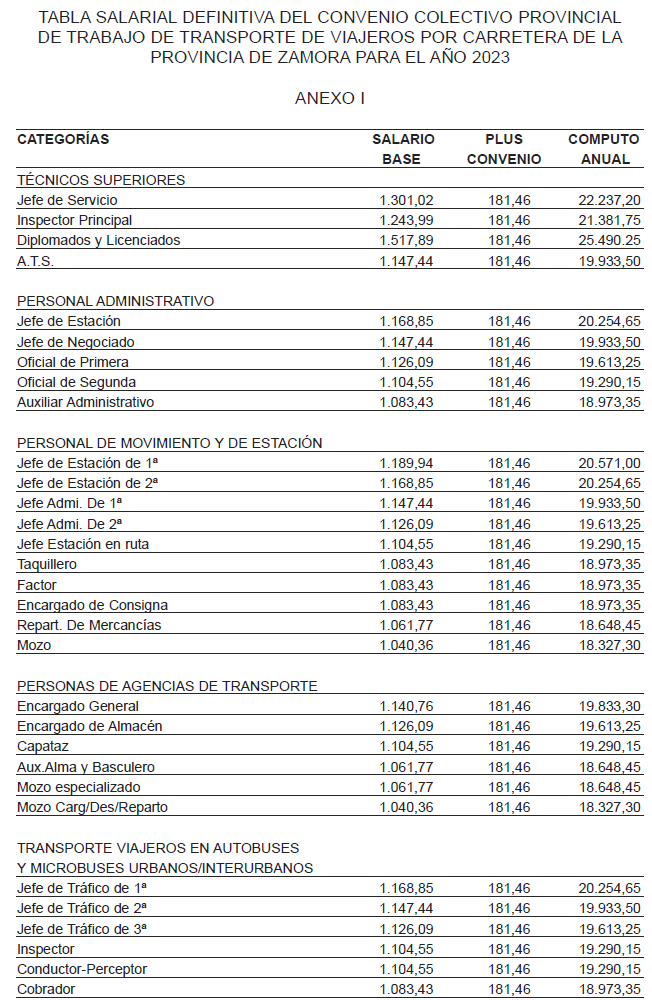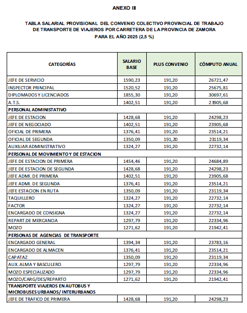CONVENIO COLECTIVO DE TRANSPORTE DE VIAJEROS POR CARRETERA PROVINCIA DE ZAMORA 2020-2025.