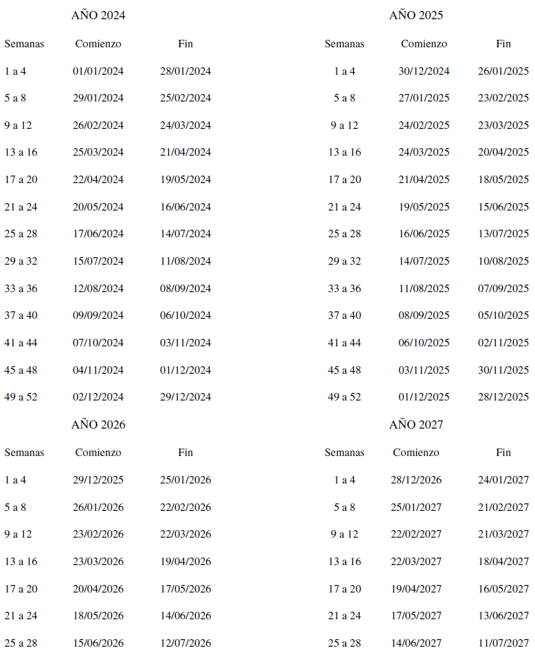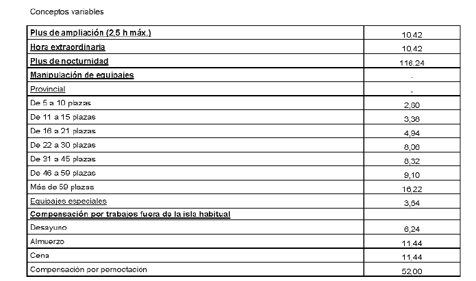 Las condiciones económicas de esta tabla serán de aplicación con efectos desde el 01/01/2024.
