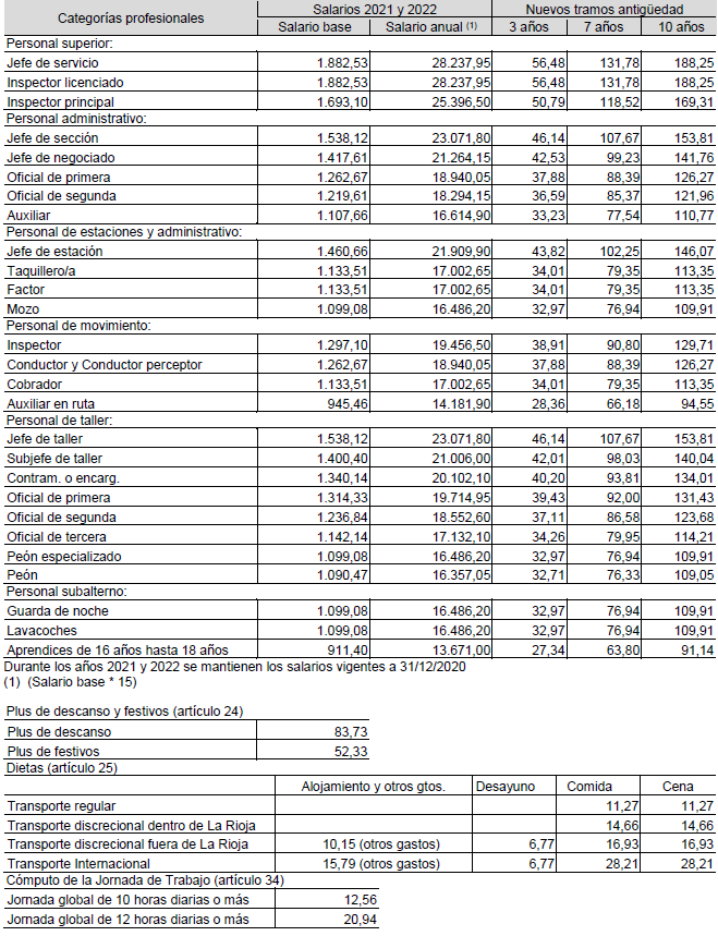 CONVENIO COLECTIVO DE TRABAJO PARA LA ACTIVIDAD DE TRANSPORTE INTERURBANO DE VIAJEROS DE LA COMUNIDAD AUTÓNOMA DE LA RIOJA PARA LOS AÑOS 2021 A 2025