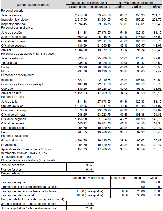 TABLA SALARIAL PROVISIONAL AÑO 2024 Y TRAMOS DE ANTIGÜEDAD