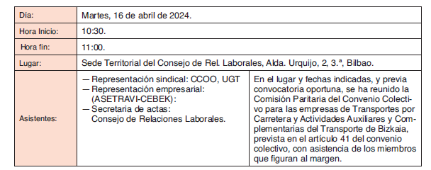 A continuación, la Comisión Paritaria ha adoptado por unanimidad los siguientes acuerdos: