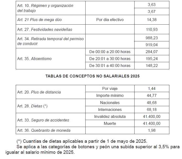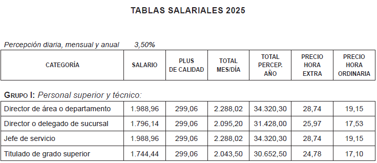 A partir del 1 de enero de 2025, se aplicará un incremento del 3,5% sobre todos los conceptos retributivos recogidos en las tablas salariales vigentes a 31 de diciembre de 2024.
