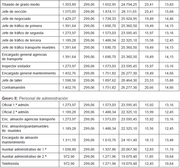 1.º) Los trabajadores a los que afecte dicha modificación no podrán prestar sus servicios en sábado y percibirán como compensación por día efectivo de trabajo la cantidad reflejada en tablas
