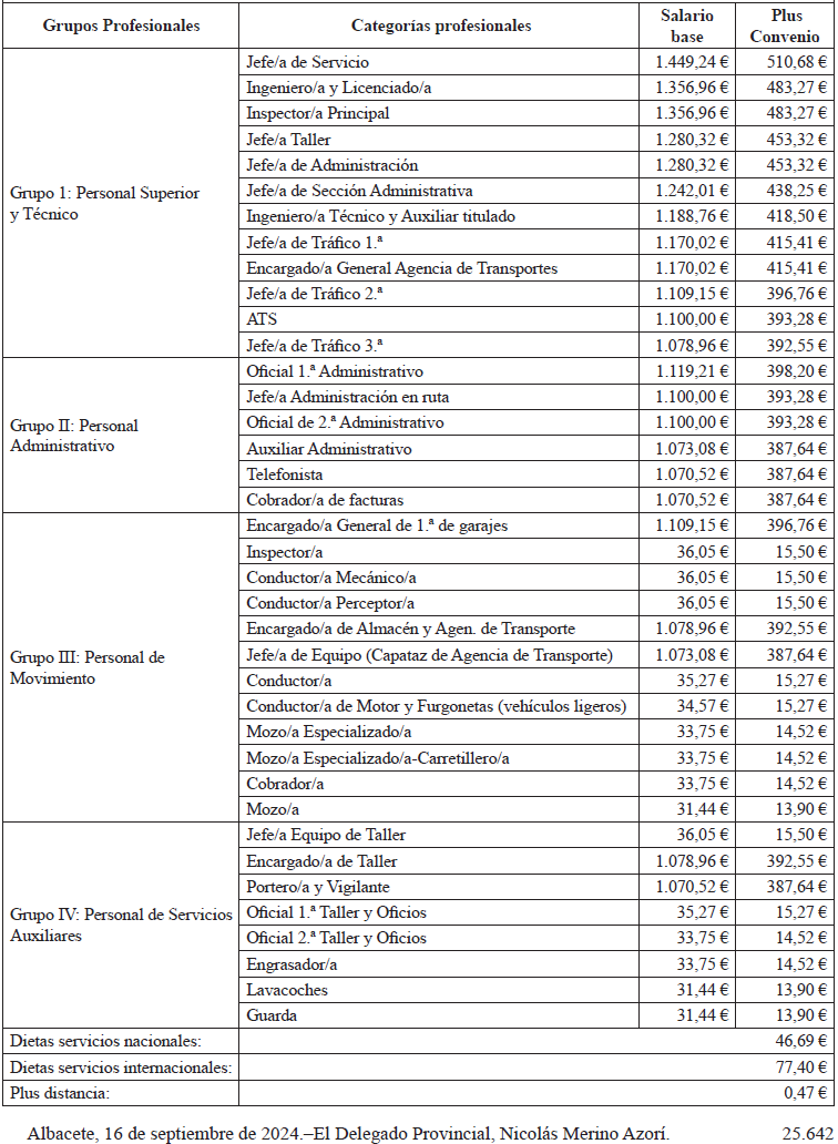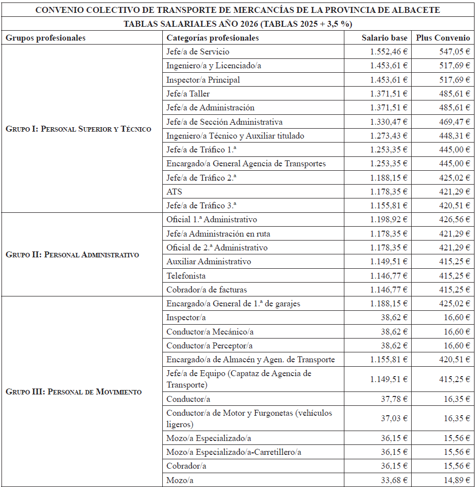 CONVENIO COLECTIVO DE TRANSPORTES DE MERCANCÍAS POR CARRETERA Y LOGÍSTICA DE LA PROVINCIA DE ALBACETE PARA LOS AÑOS 2024-2025-2026.