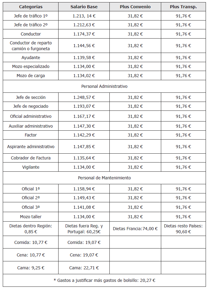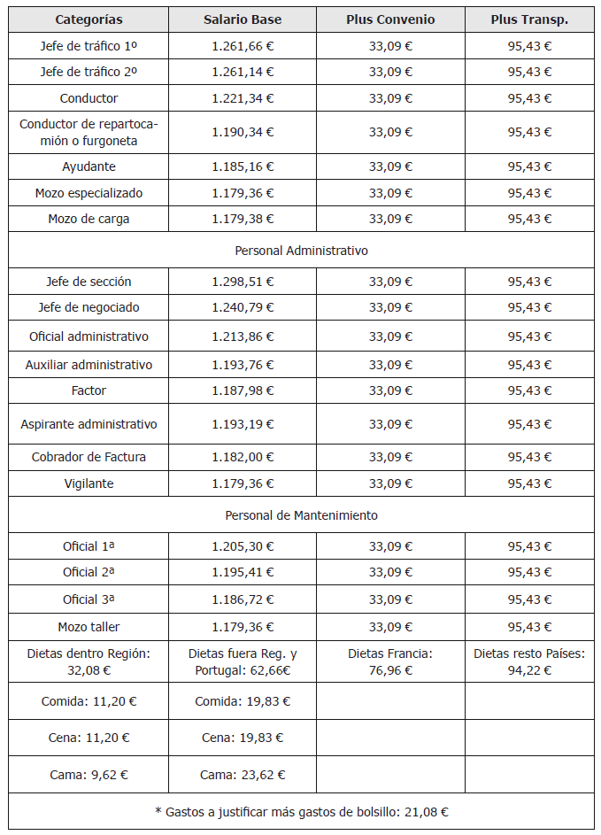 C) Plus transporte. Se establece un plus transporte a percibir por todo el personal comprendido en este convenio, en función de los días efectivamente trabajados.
