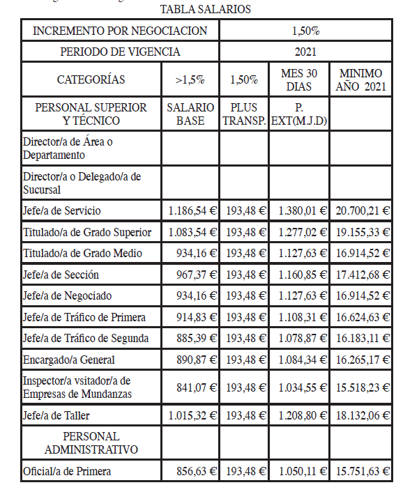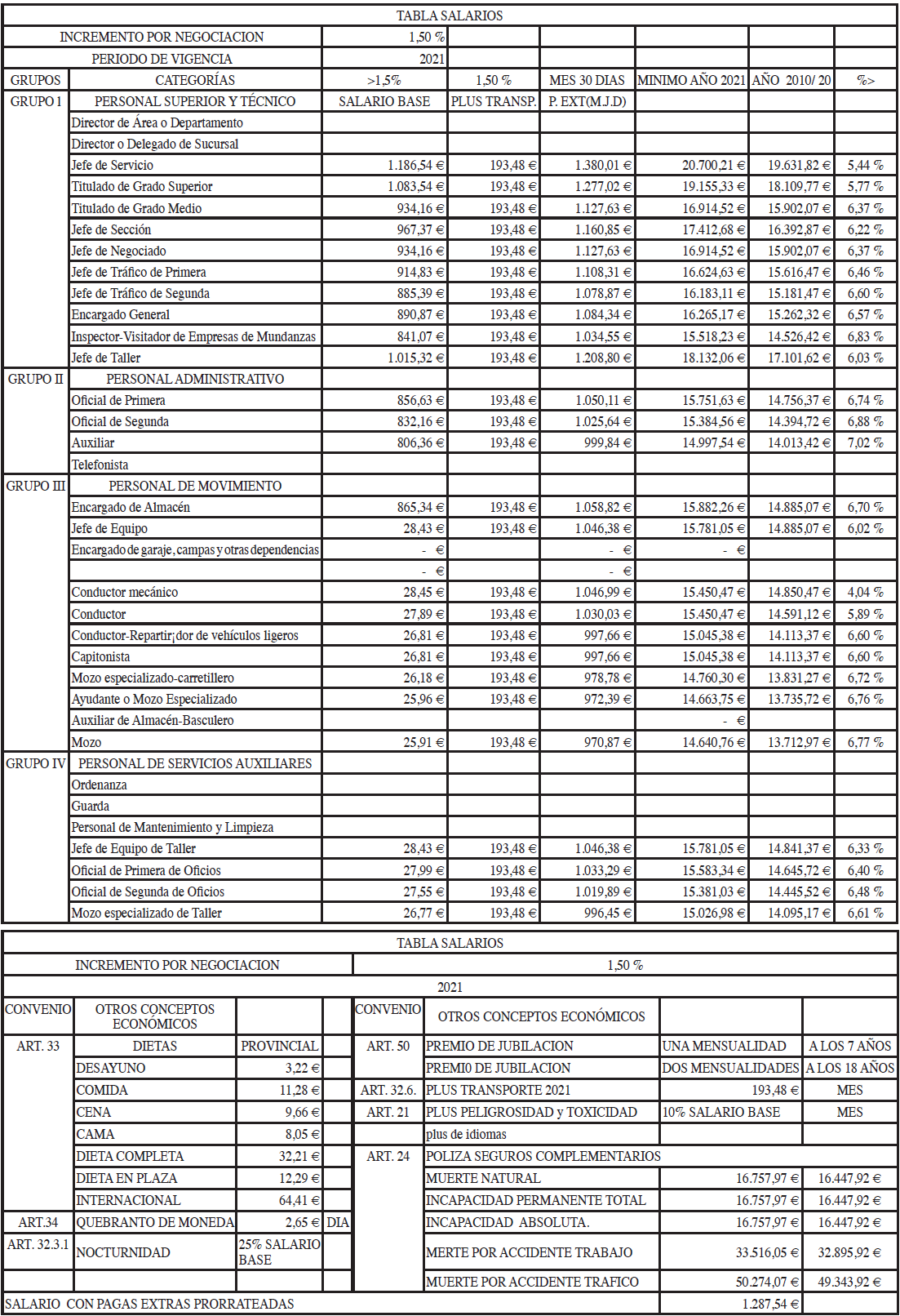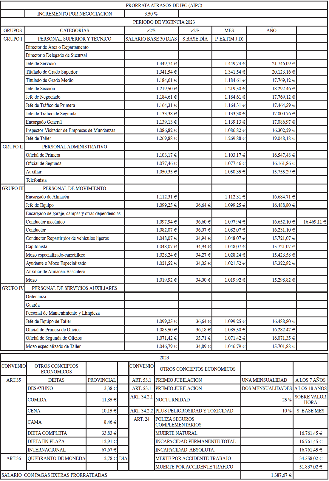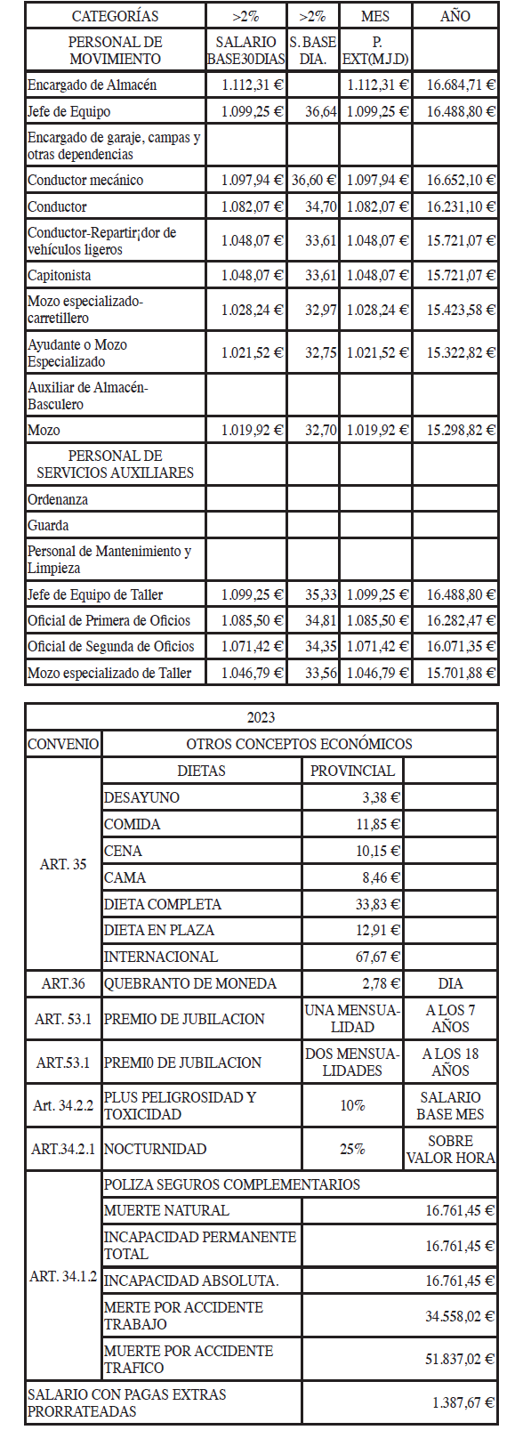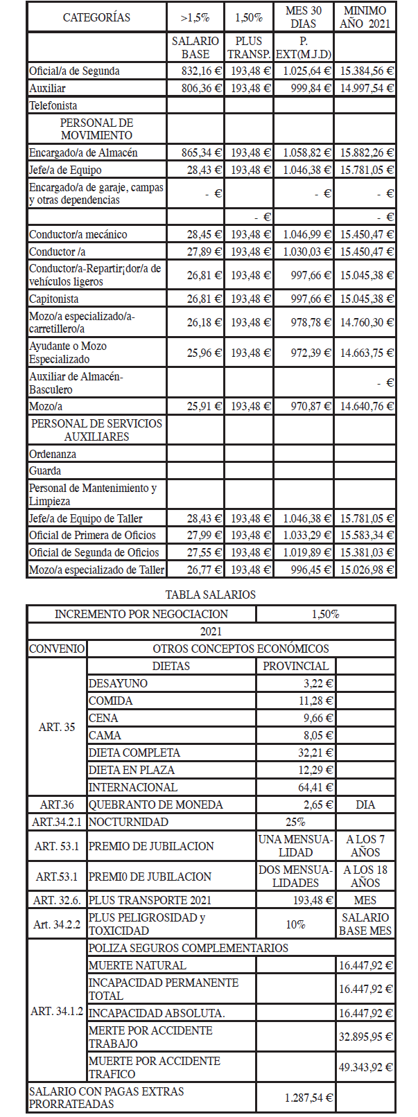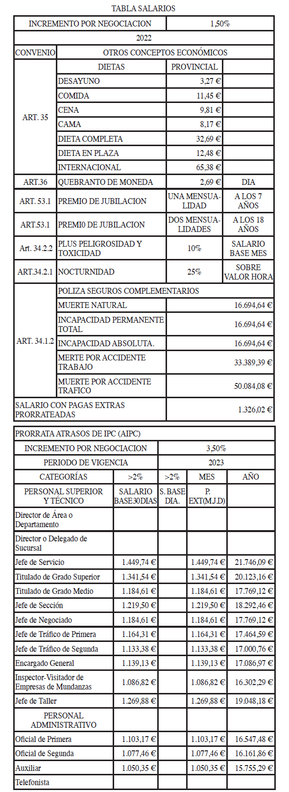 4.- Solicitar a la Autoridad Laboral una corrección de errores detectados en la publicación del convenio colectivo en las cantidades transcritas de salario mensual y salario día en el Conductor Mecánico para el año 2022 (1.060,81.-€ y 35,36.-€), así como en las del Conductor Repartidos en el salario día (33,75.-€).