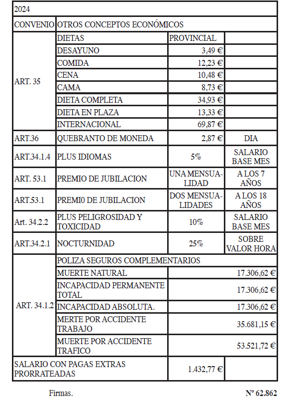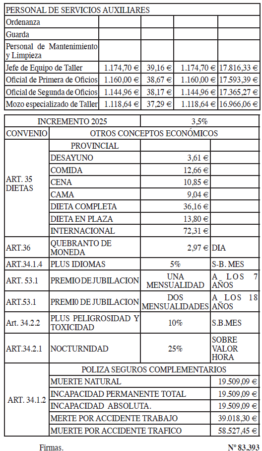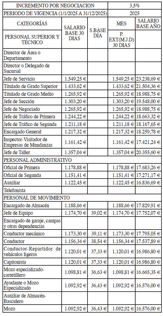 1. La prórroga del convenio colectivo para los años 2025 y 2026 2. Para el periodo comprendido entre 1 enero a 31 diciembre 2025, se establece un incremento de un 3,5% de la tabla salarial y restantes conceptos económicos, tomando como referencia la tabla salarial vigente a 31 de diciembre de 2024.