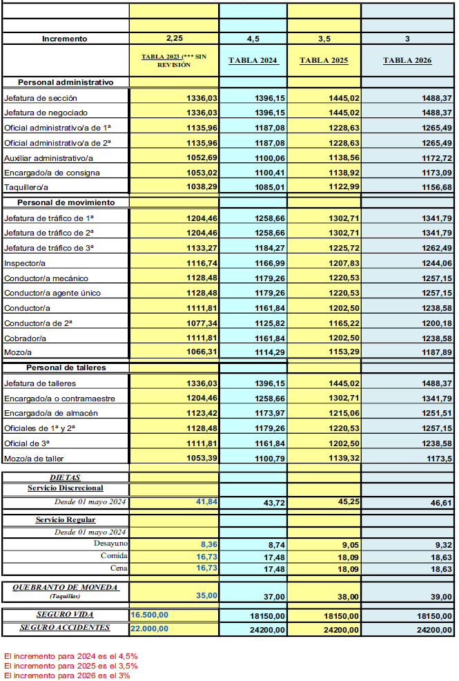 TABLAS SALARIALES PARA 2024 a 2026.