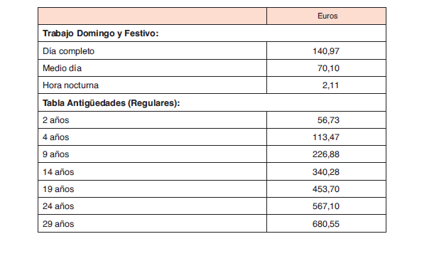La cuantía del complemento personal de antigüedad será por cada bienio y por cada quinquenio lo establecido en la tabla salarial.