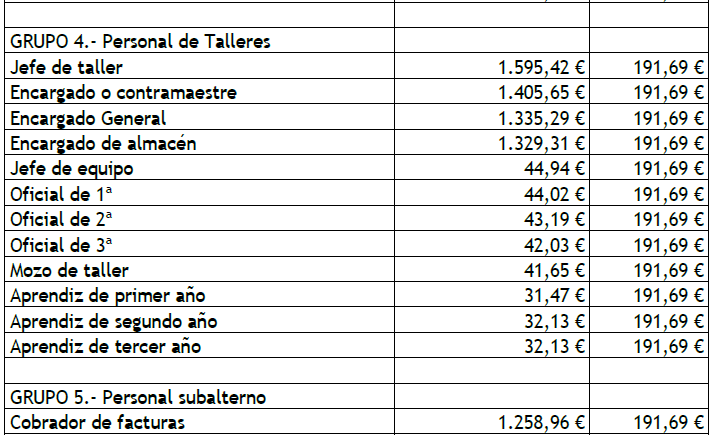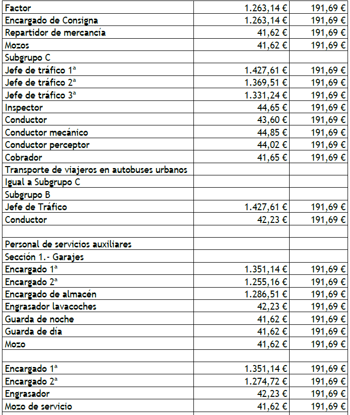 Se establece un plus de transporte cotizable a la seguridad social igual para todas las categorías de 191,69 € para el año 2025 y para los años 2026 y 2027 a dicha cuantía le será de aplicación el porcentaje que incremente el Salario Base en cada uno de esos años.
