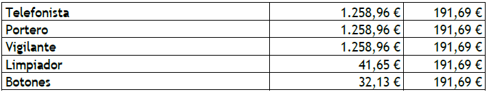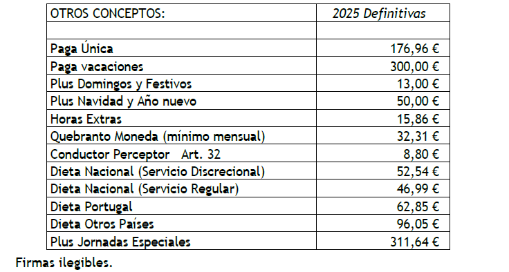 Año 2025: Se establece un incremento salarial del 0,95% + el IPC Interanual del año 2024 (2,8%) lo que hace un 3,75% en tablas salariales y el resto de conceptos salariales del convenio. Se abonará con carácter retroactivo desde el 1 de enero de 2025.