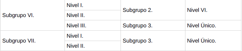 Subgrupo VII: pertenecen a este subgrupo los trabajadores que realizan funciones administrativas, mantenimiento, soporte o similar bajo supervisión.