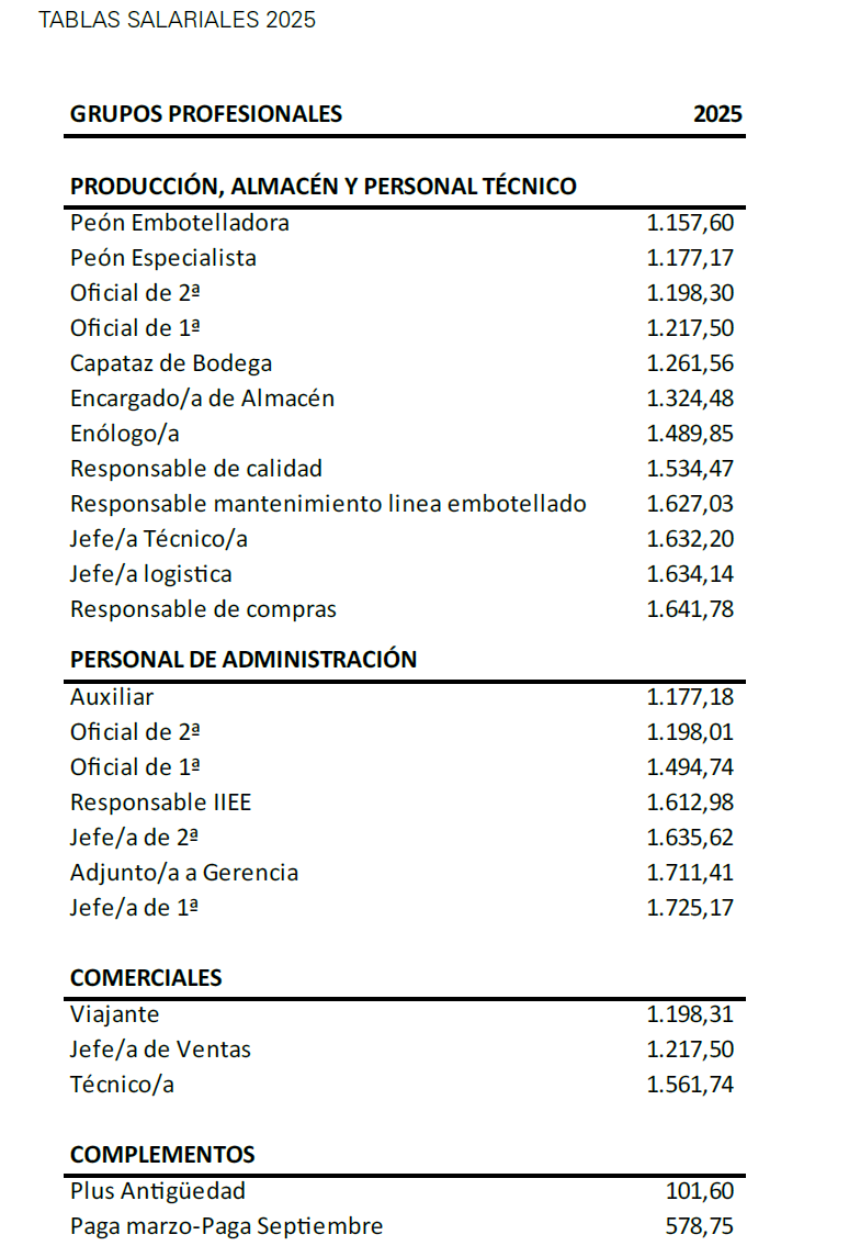 Constituye el ORDEN DEL DIA la aprobación de unas nuevas tablas salariales para 2025.