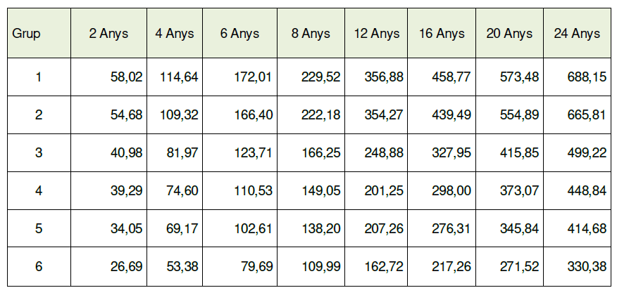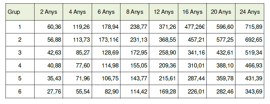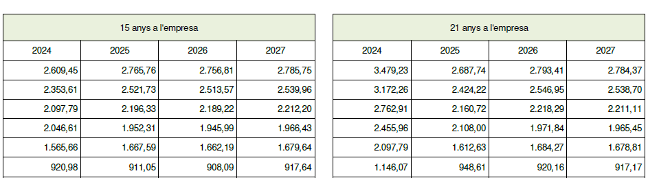A partir dels 24 anys d’antiguitat a l’empresa, la quantia romandrà sense variació.