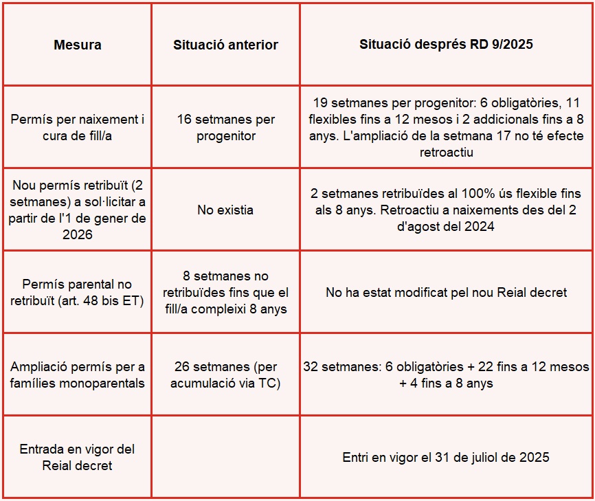 Novetats en els permisos per afavorir la conciliació familiar CCOO de Catalunya reclama la retribució completa dels permisos de cures (accés a la notícia)