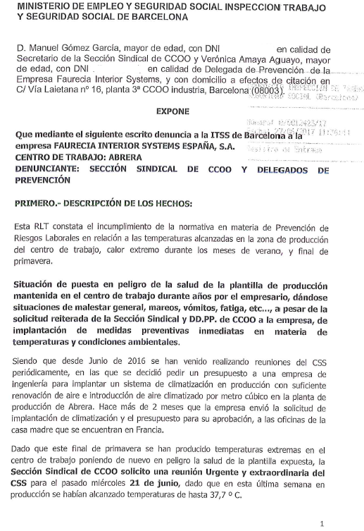 Os dejamos la portada de la denuncia que se curso ayer a inspección de trabajo por el tema de las temperaturas. Mas info en los tablones de anuncio.