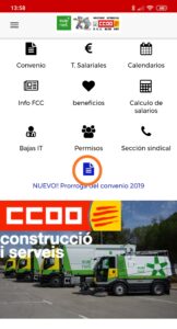 Ya podéis consultar en la APP los calendarios laborales para el 2020 de todos los turnos en el apartado que os marco con un circulo rojo de en la imagen.