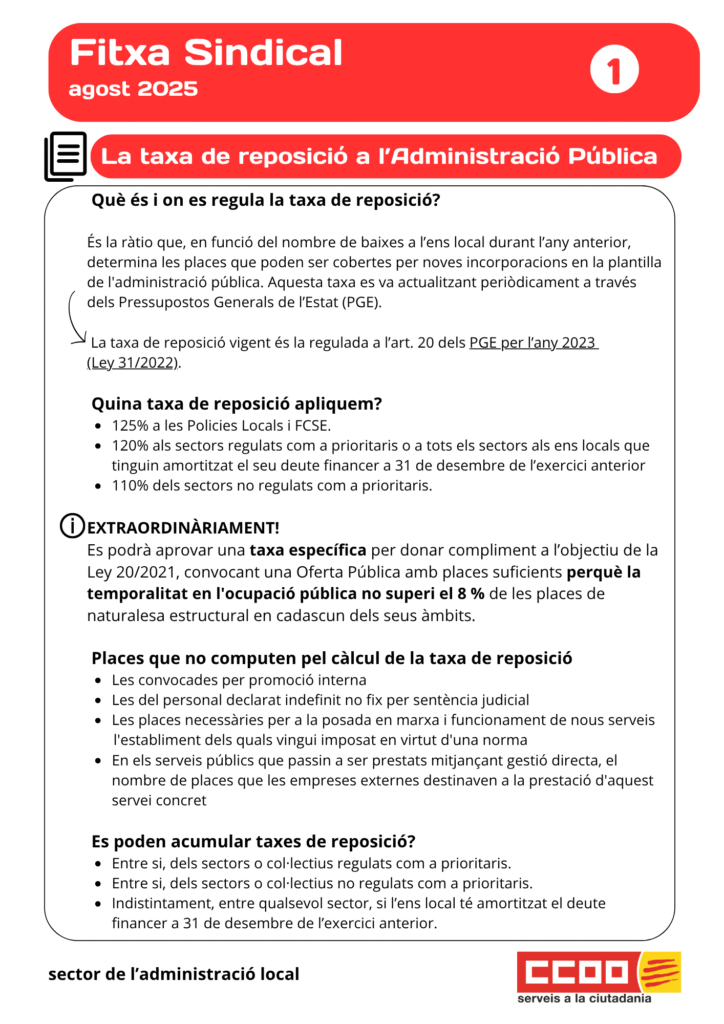 Aprofitem la presentació del nou model de Fitxa Sindical per fer un resum dels conceptes i elements claus de la taxa de reposició.