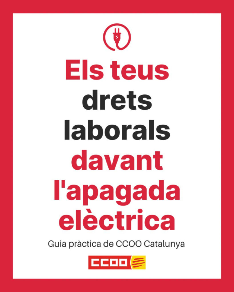 Amb motiu de l’apagada elèctrica general que ha afectat el conjunt de la península Ibèrica el 28 d’abril de 2025, CCOO de Catalunya posa a disposició dels treballadors i treballadores i de l’opinió pública general la següent informació recopilada pels seus serveis jurídics i d’assessorament: