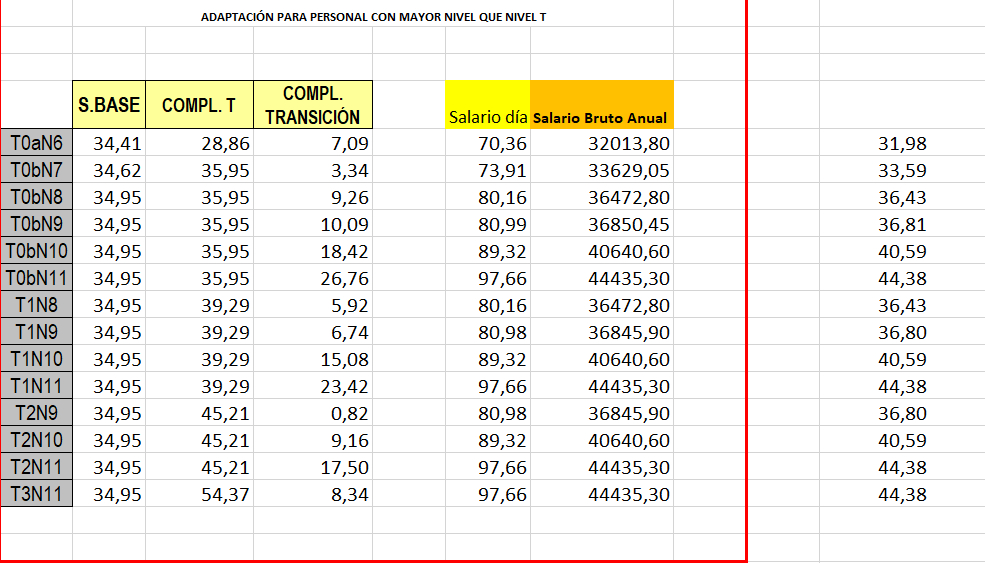 Hemos añadido el precio de hora extra por categoría. Tener en cuenta que ese precio es un precio mínimo, ya que a parte de lso conceptos de salario base, complemento T, o ocmplemento de transición, también computa la antigüedad para la hora extra, lo cual significa que dependiendo de la antigüedad el precio de la hora extra puede variar de una persona a otra.