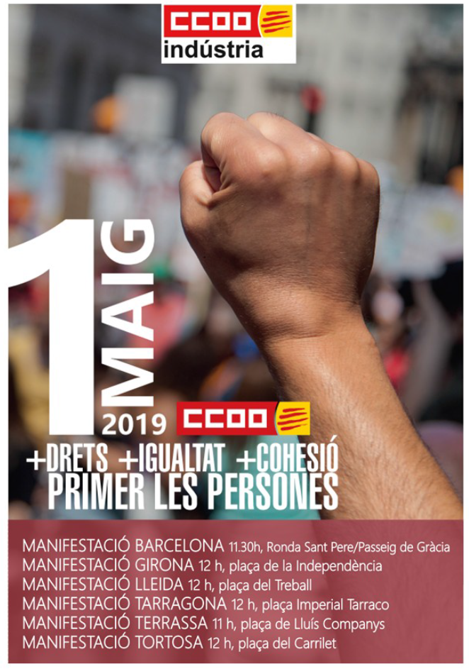 1er de Maig reivindicatiu. Primer les persones! 2 de febrero de 202230 de abril de 2019 por xabaurrea.ccoo@gmail.com Companyes, companys, Us adjuntem cartell informatiu amb informació de les manifestacions programades a Catalunya per al 1er de Maig. Us animem a assistir a la convocatoria més propera per reivindicar el dia internacional del treball! Salut.