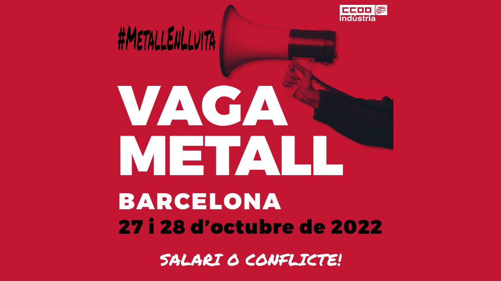 Un cop fetes les respectives assemblees de delegats i delegades del Sector del Metall de la província de Barcelona, davant la situació d’estancament de les negociacions del conveni provincial, CCOO d’Indústria i UGT-FICA de Catalunya han decidit convocar vaga al Sector del Metall de la província de Barcelona els dies 27 i 28 d’octubre.