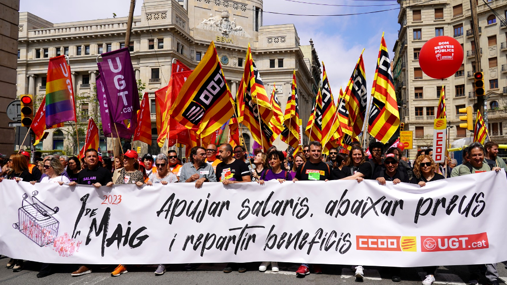 Milers de persones es manifesten a tot Catalunya aquest 1 de Maig per reclamar un augment dels sous