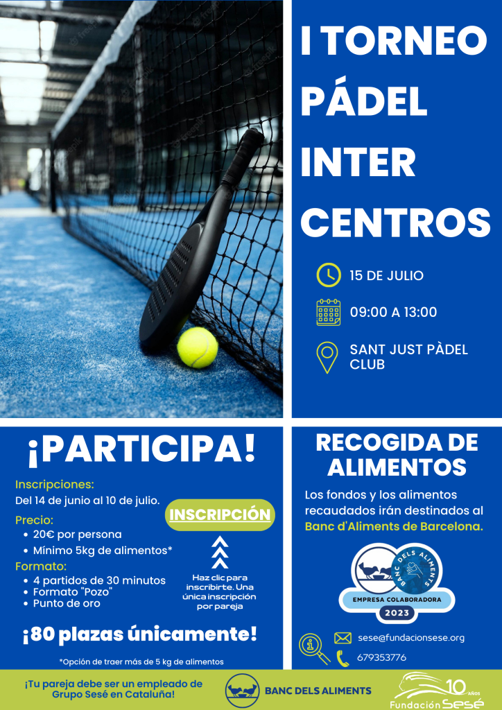 Desde Fundación Sesé hemos puesto en marcha el I Torneo solidario de pádel para todos los empleados de Sesé en Cataluña con el objetivo de recaudar fondos y alimentos para el Banc d’Aliments de Barcelona.